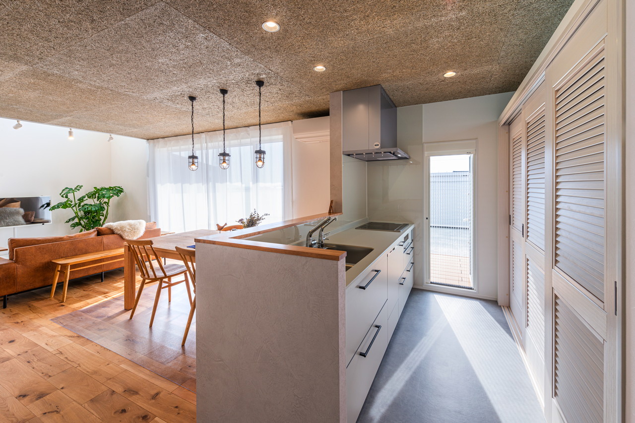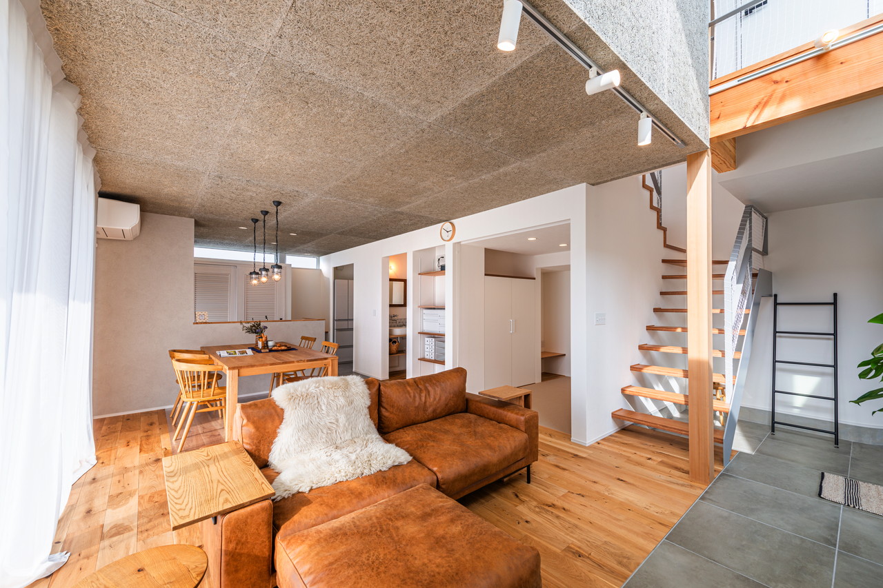 木毛セメント板を使ってインダストリアルなデザインを演出