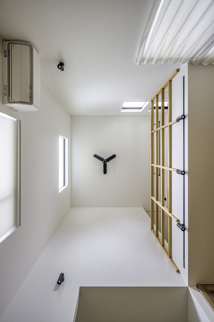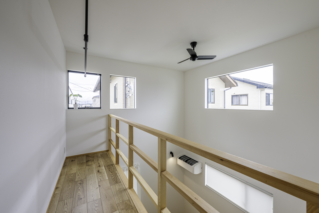 吹抜けの上は南東からの日差しを利用して物干しスペースに
