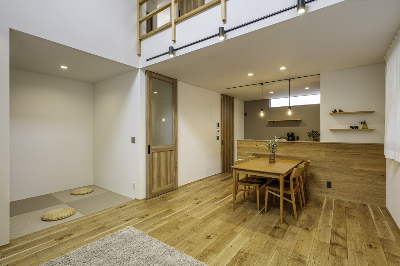 一直線型のLDKはタタミスペースや吹抜けとつながる