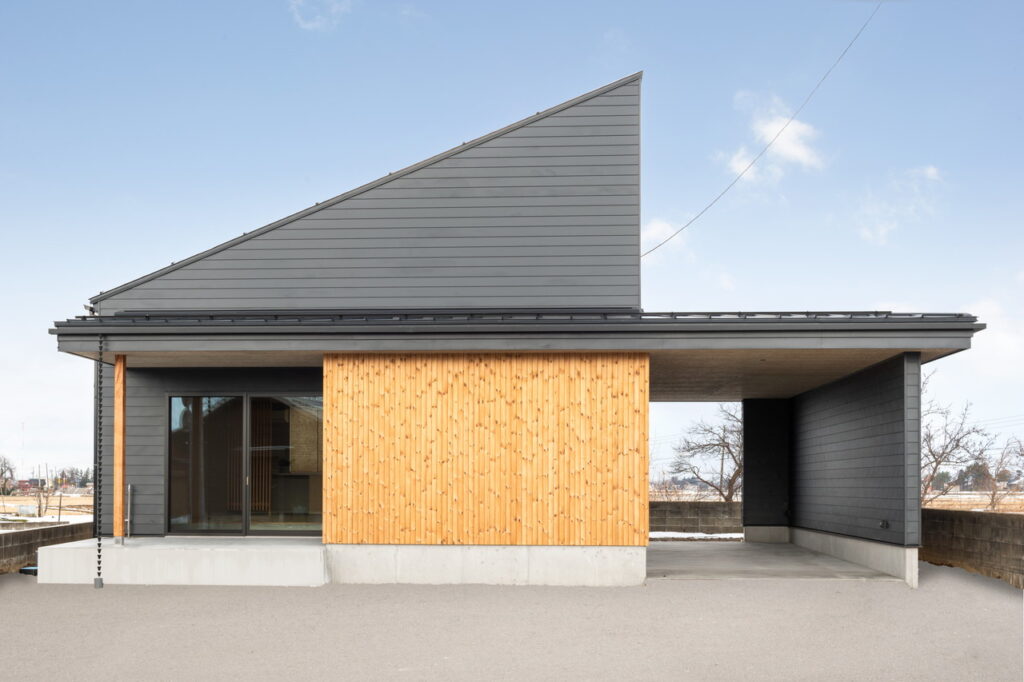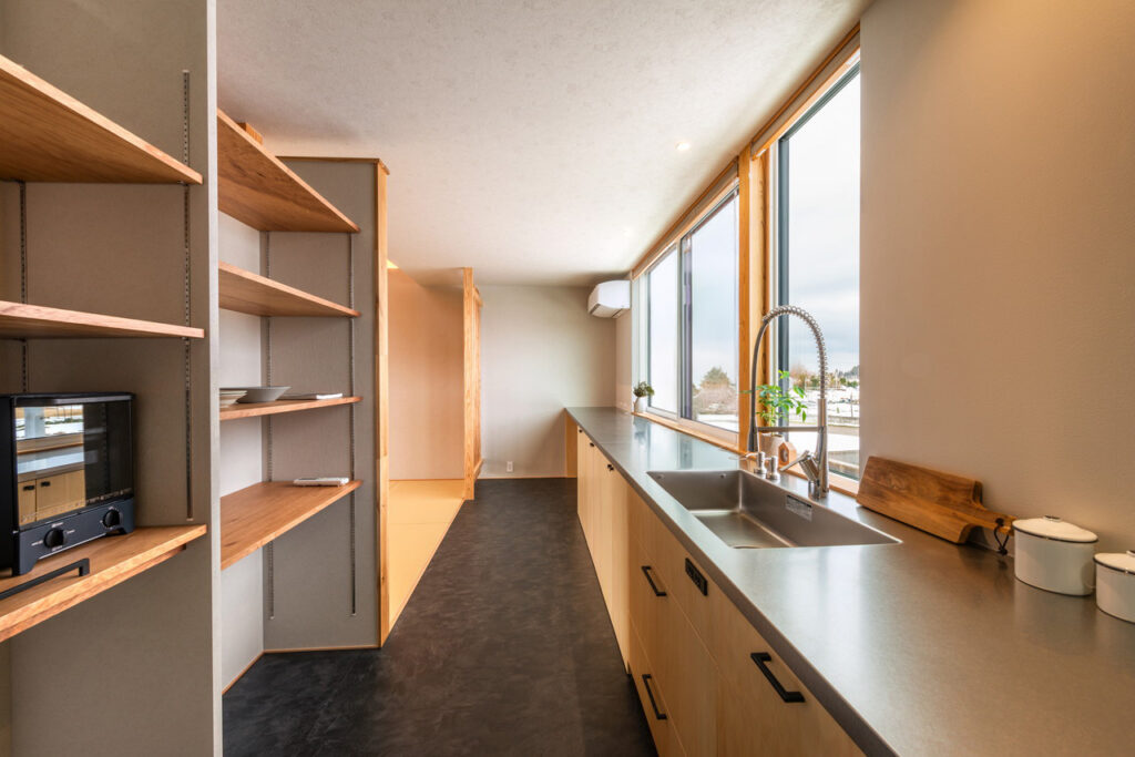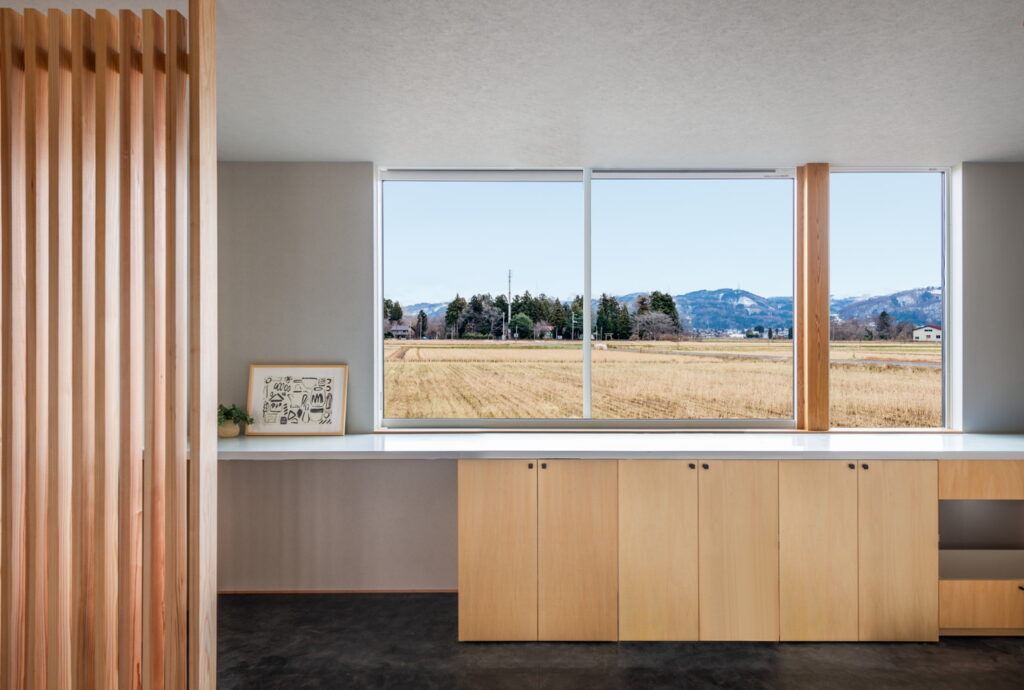 『ハコ』に寄り添うキッチンからは 田園風景が広がり
