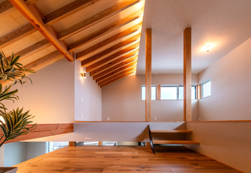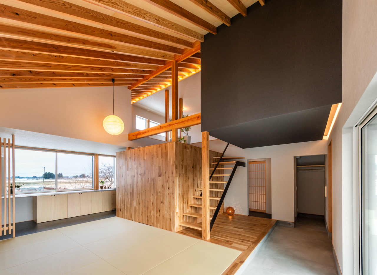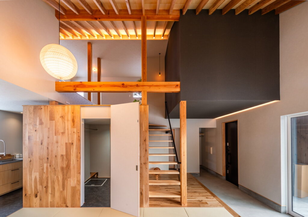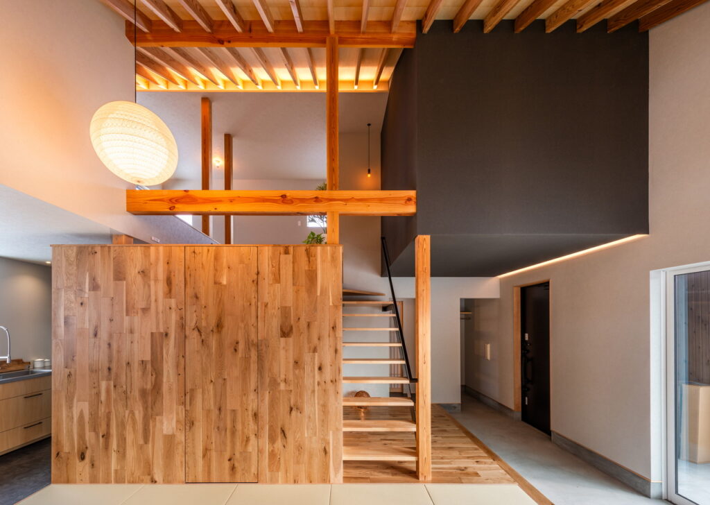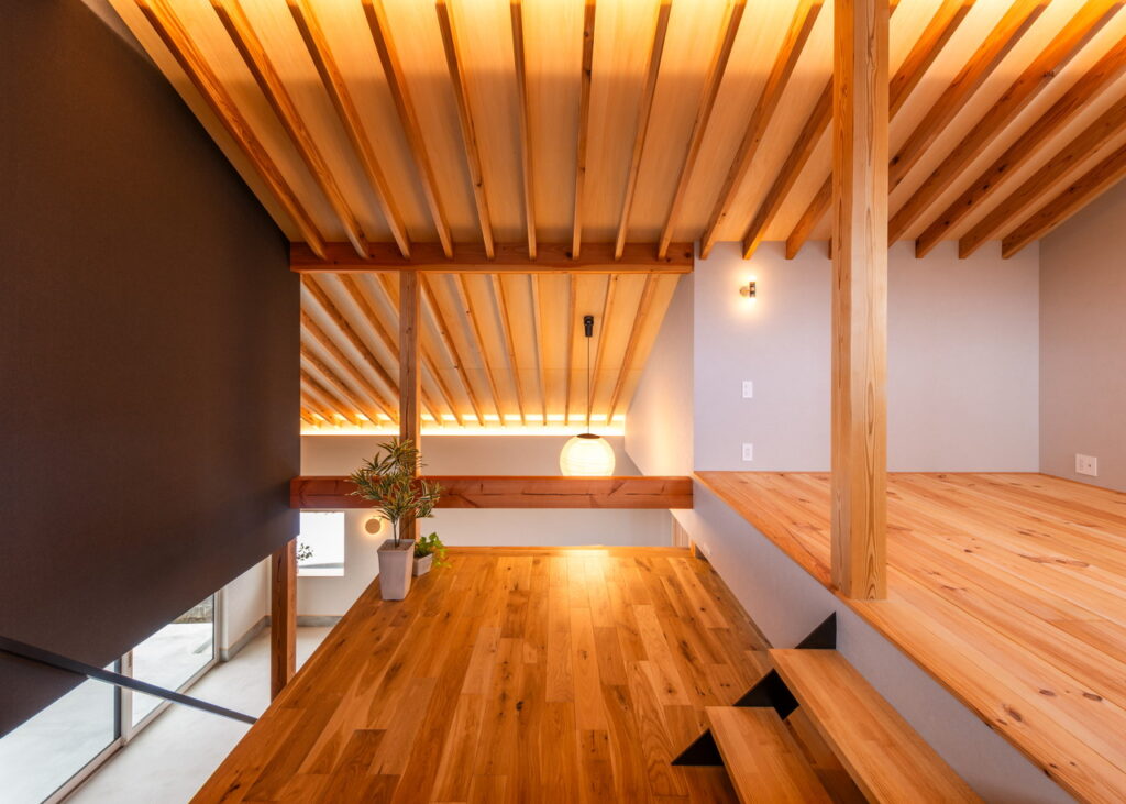 スキップフロアを採用することでリビングとのつながりを強調した
