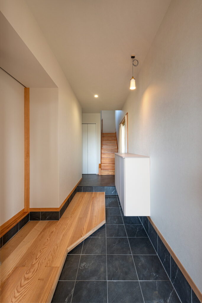 玄関を増築し、来客時でも混雑しないように計画した。