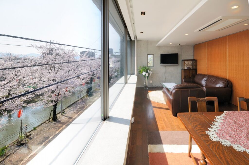 2階リビングから福島江の桜並木を存分に見ることであった。