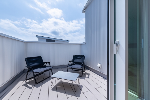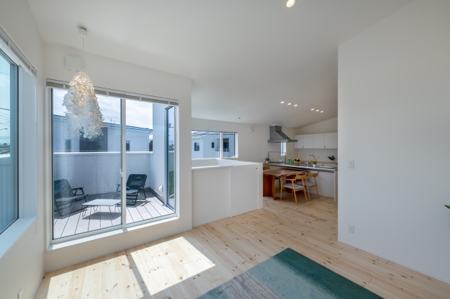空のぬける東南に配置されたデッキは第2のリビングルーム。