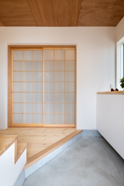 空と田園をきりとる家