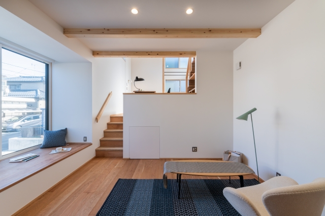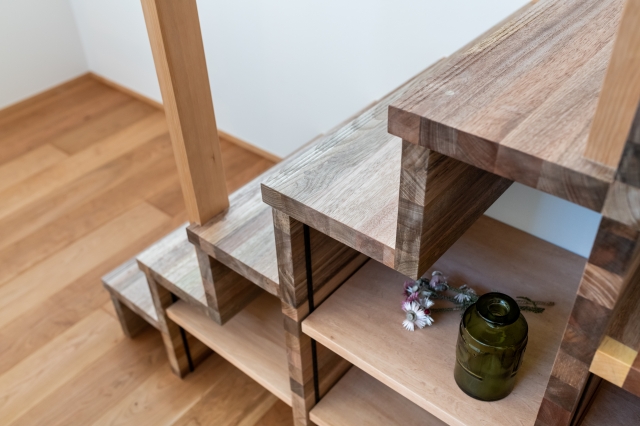階段下にも本に活躍してもらい、ステップゾーンに用と美の2つの要素が生まれる。
