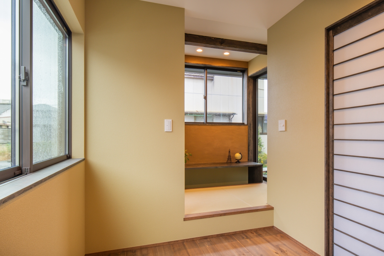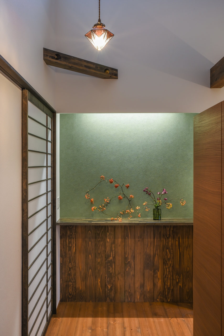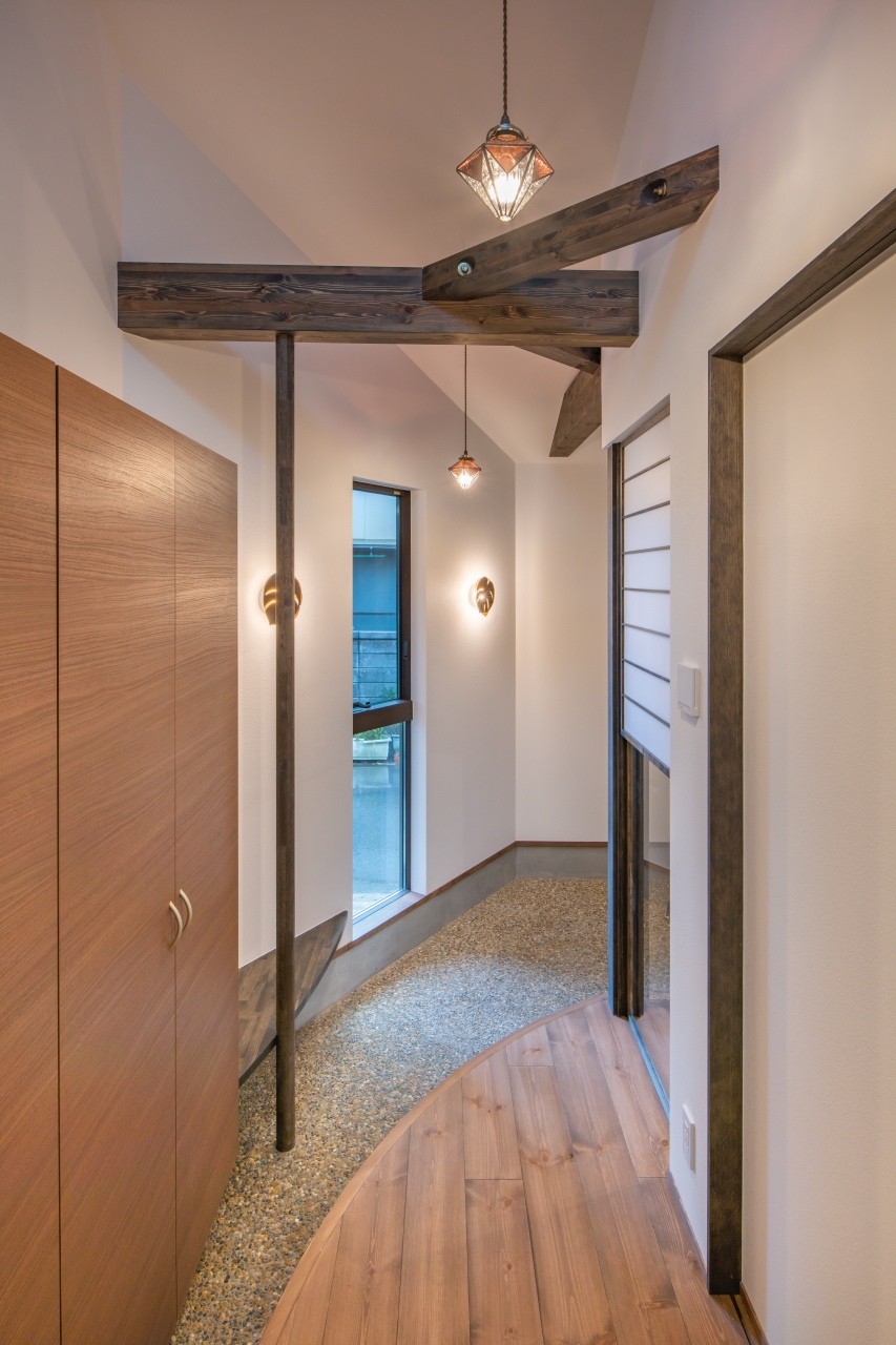 緩やかにカーブした玄関框に導かれるように室内へ。