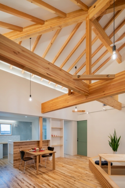 ここも前のお住いで使われていた立派な欅の梁を再利用。