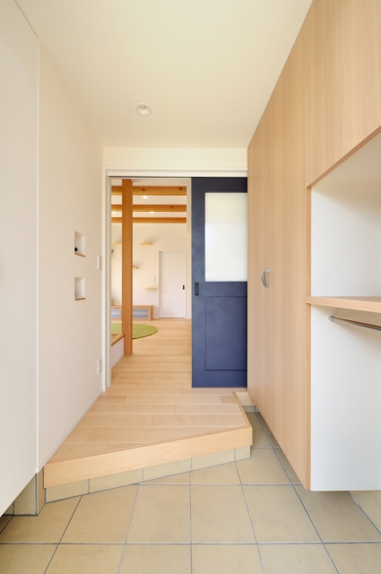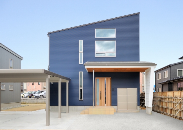 水曜日 雨が降っているけど大丈夫!玄関から大きく伸びる庇がみんなの自転車を守っている。