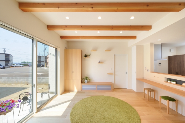 土曜日 お天気もいいし、リビングとつながる土間テラスで日向ぼっこ。ぽかぽかで、気持ちいいよ。