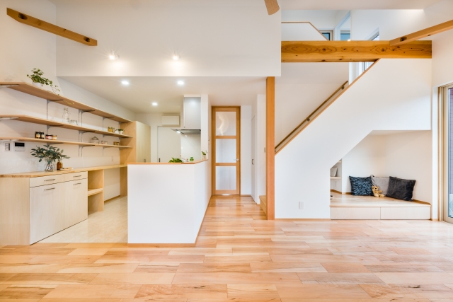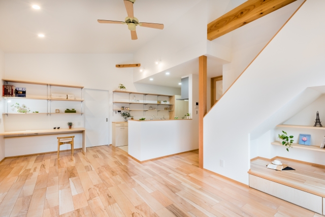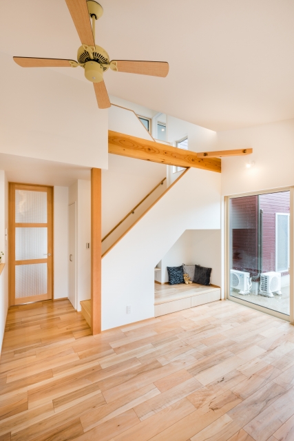 ダイナミックなリビングで家族と語り合うひとときは、愉快で楽しい時間。