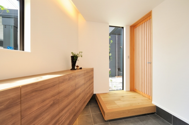 コの字型に囲まれた土間テラスで