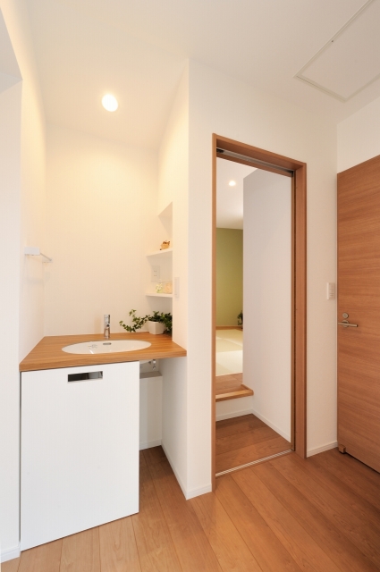 生まれた段差には収納がついて