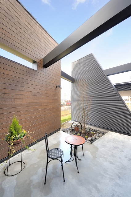 三角敷地を無駄なく活かす 角度を振った平面プランは 空間に視覚的な広がりと楽しさを もたらしてくれる。