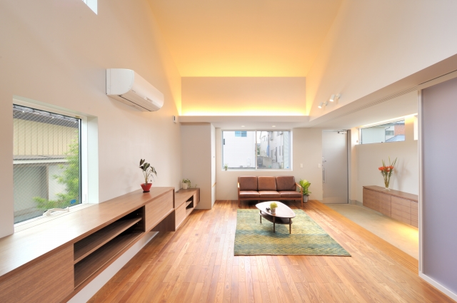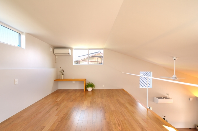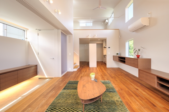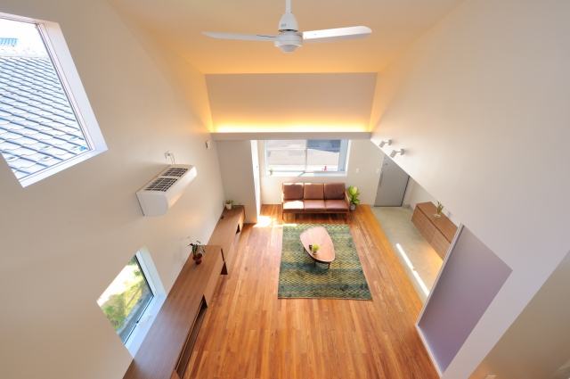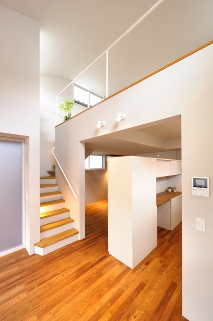 勾配天井で1階と2階を伸びやかにつなぐ。