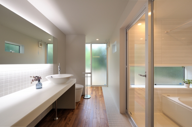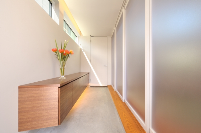 4枚の引戸を自在に開け放す。玄関は土間となり、