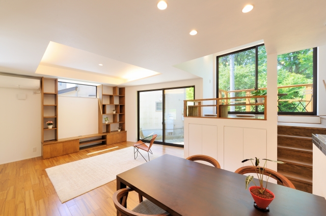 遊歩道を歩き、緑を浴び、子供たちが駆け回る映像が