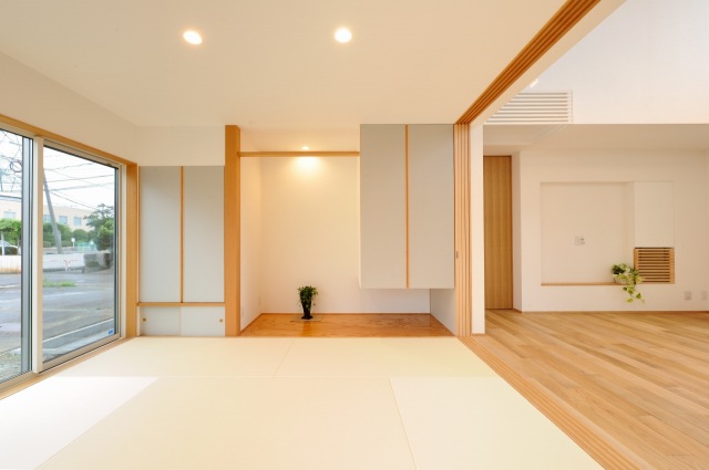 庭に抜ける開放的なリビングからは