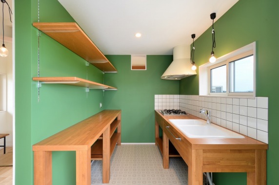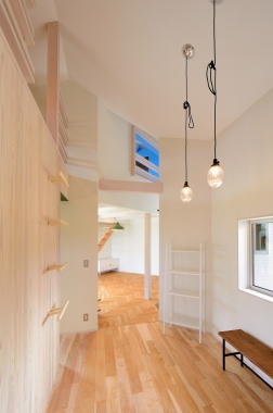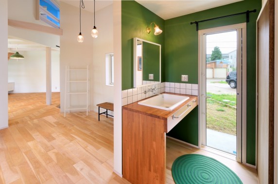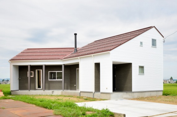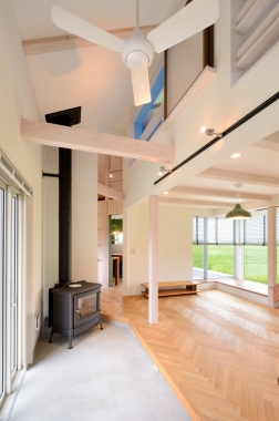 扉を開けると思わず深呼吸したくなるような 田園風景が迎えてくれる。 大きな土間には天井まで伸びる 黒い煙突の薪ストーブが ちょっとだけほこらしそうに座っている。