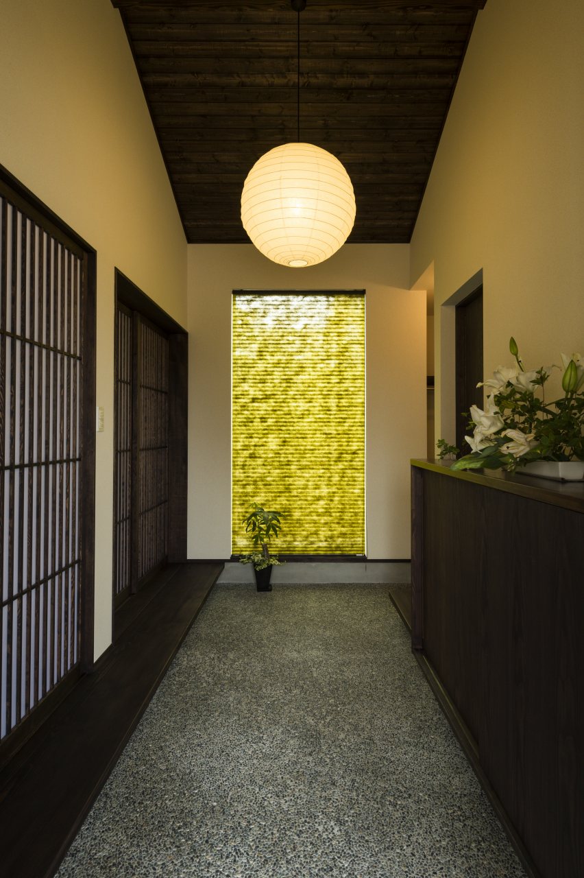 深い庇に招き入れられる小砂利敷きの土間。