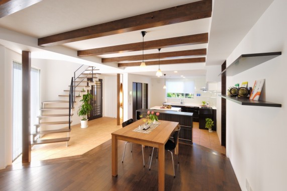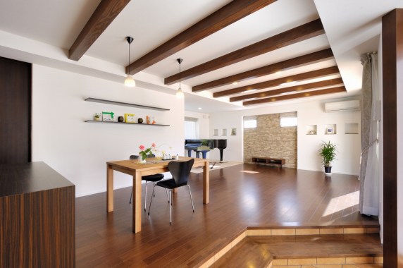 ダイニング・リビングにちょっと段差をつけて
