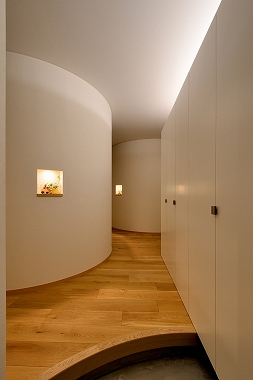金属・木・塗り壁の素材の切替で圧迫感が出ないように外観をヒューマンスケールにスケールダウンした。