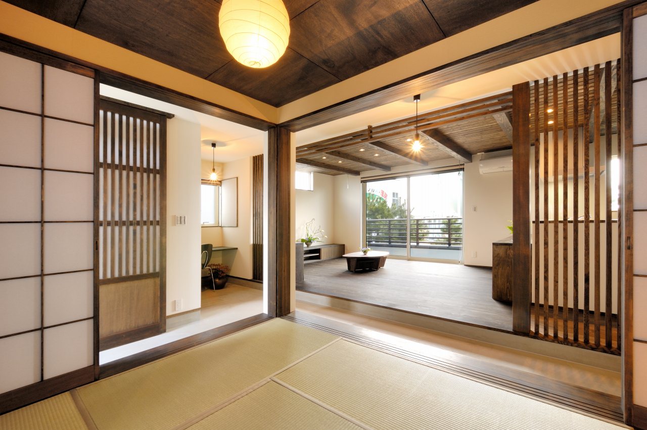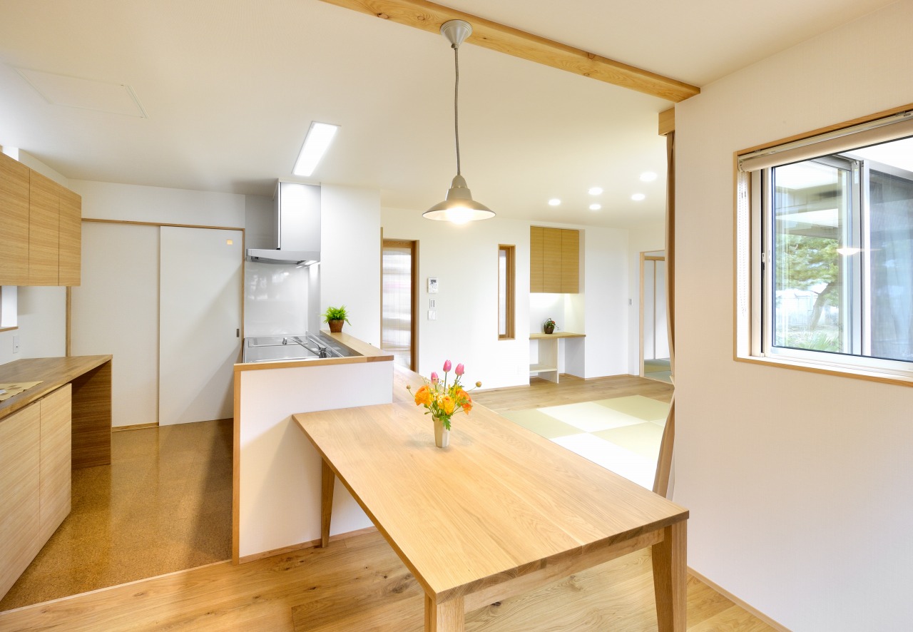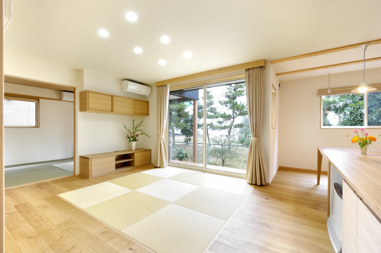 オークを基調にした大人の空間に、和の畳が存在しています。