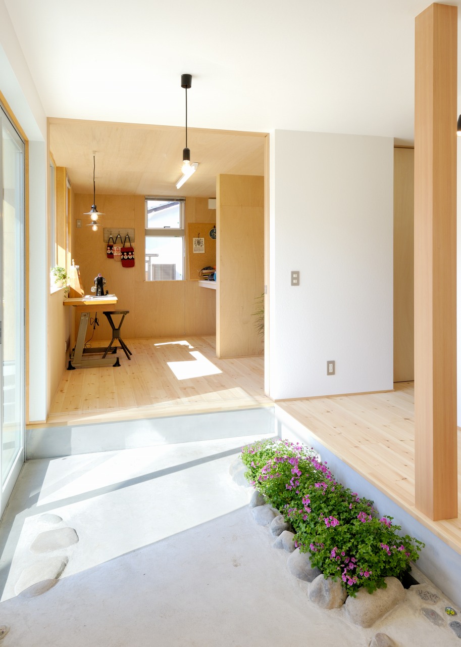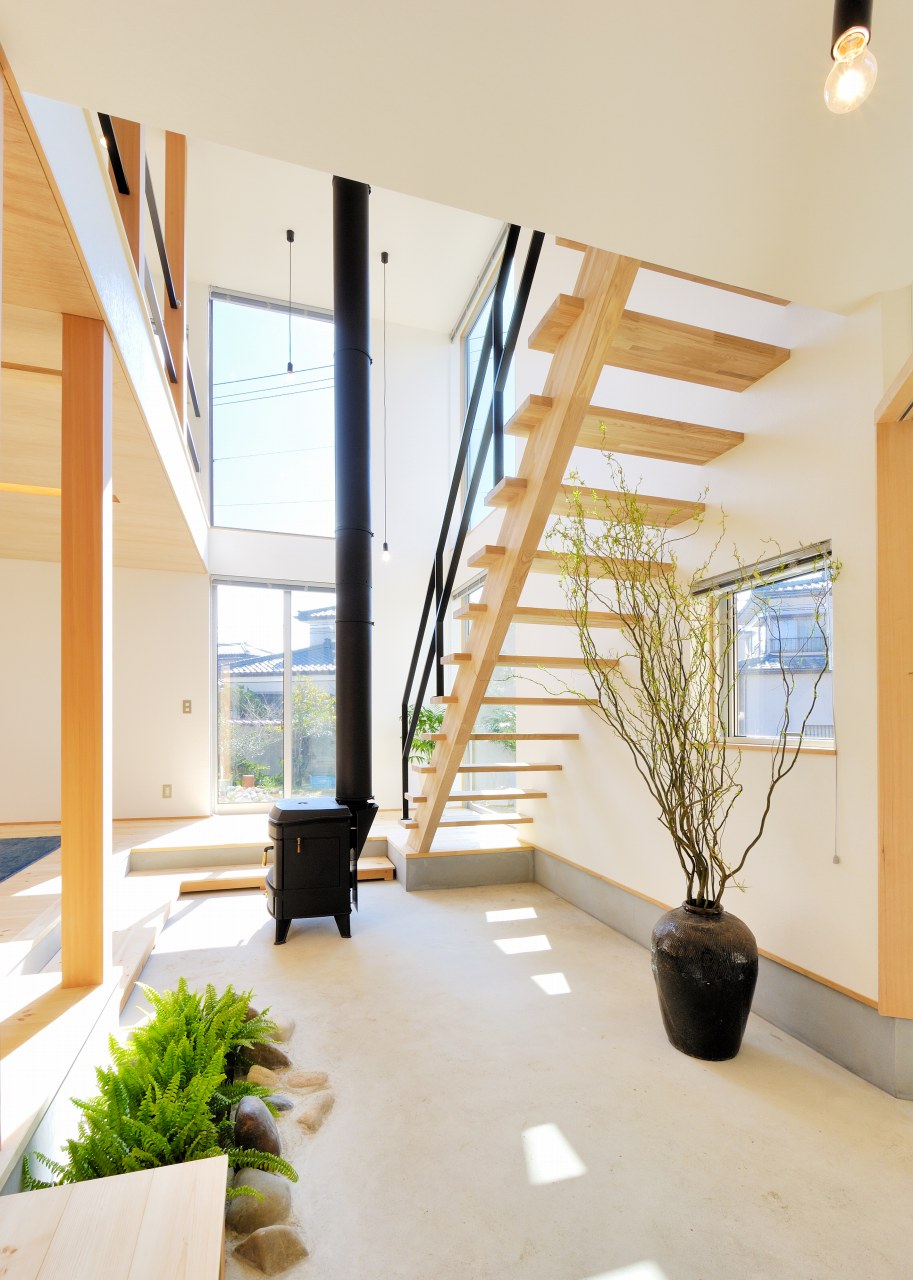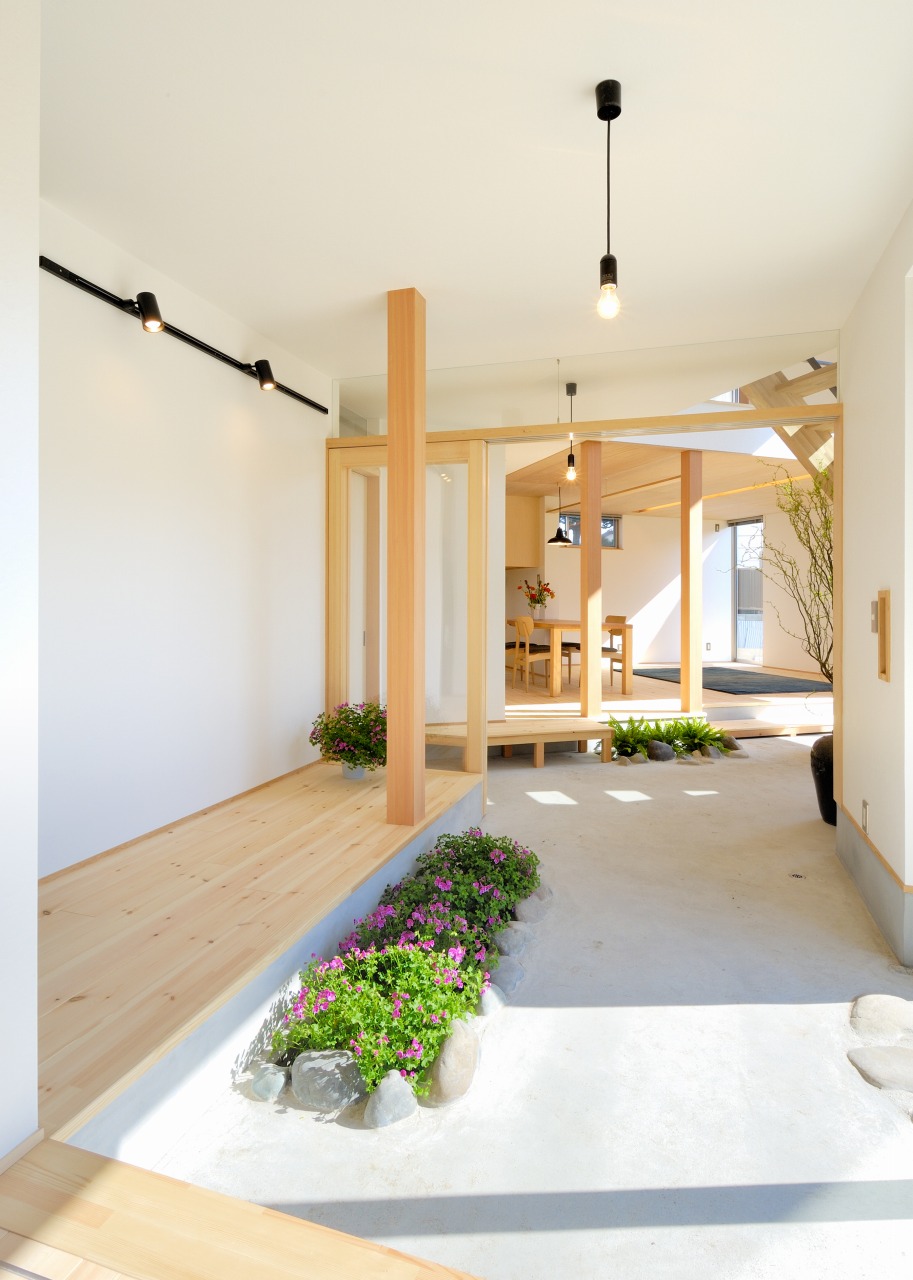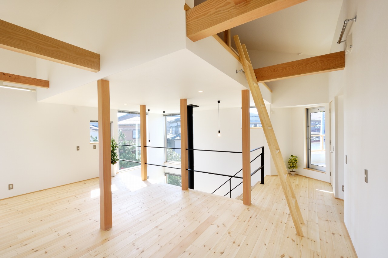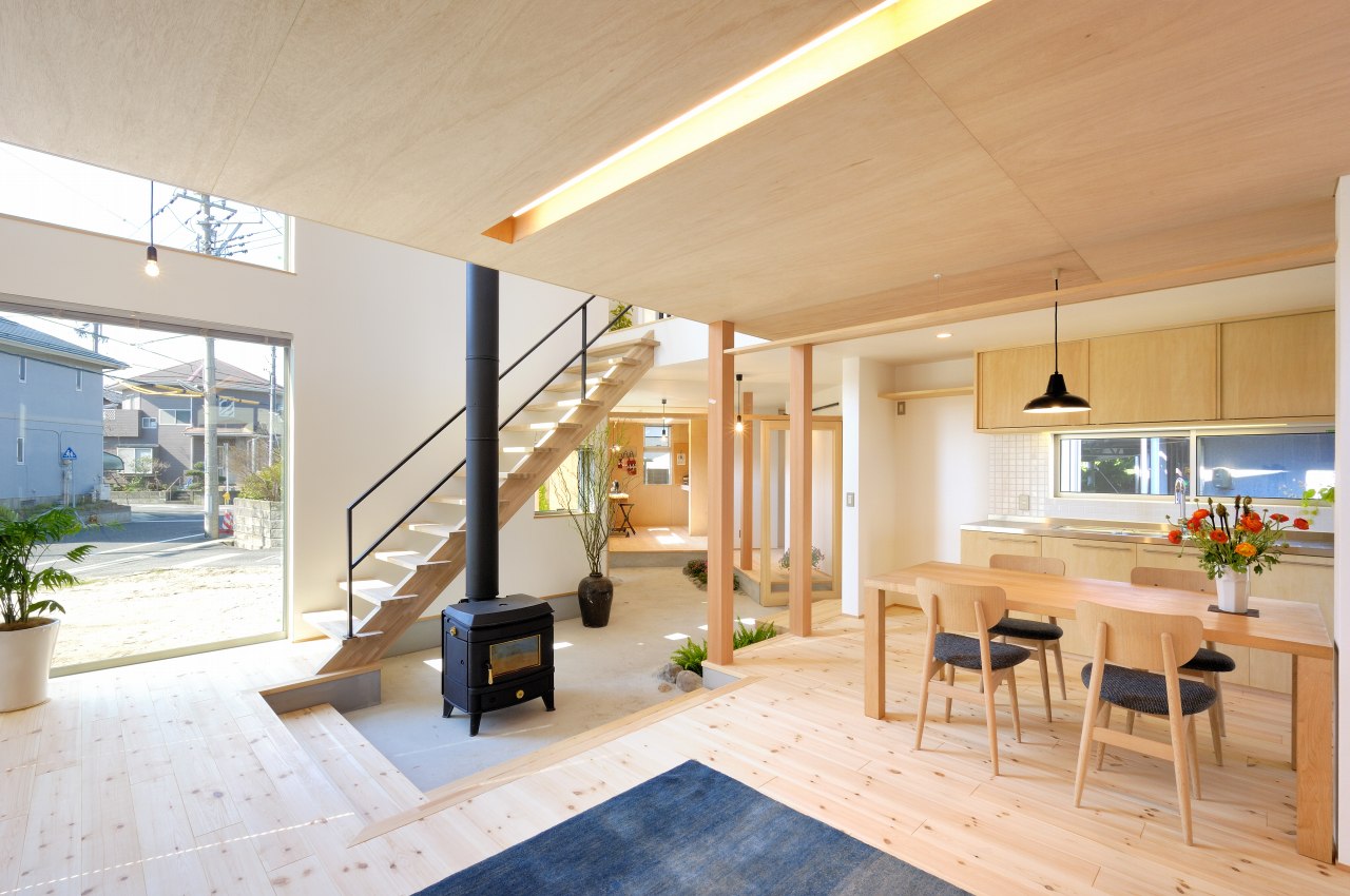 大きな土間を造り、暖は昔ながらの薪でとる。