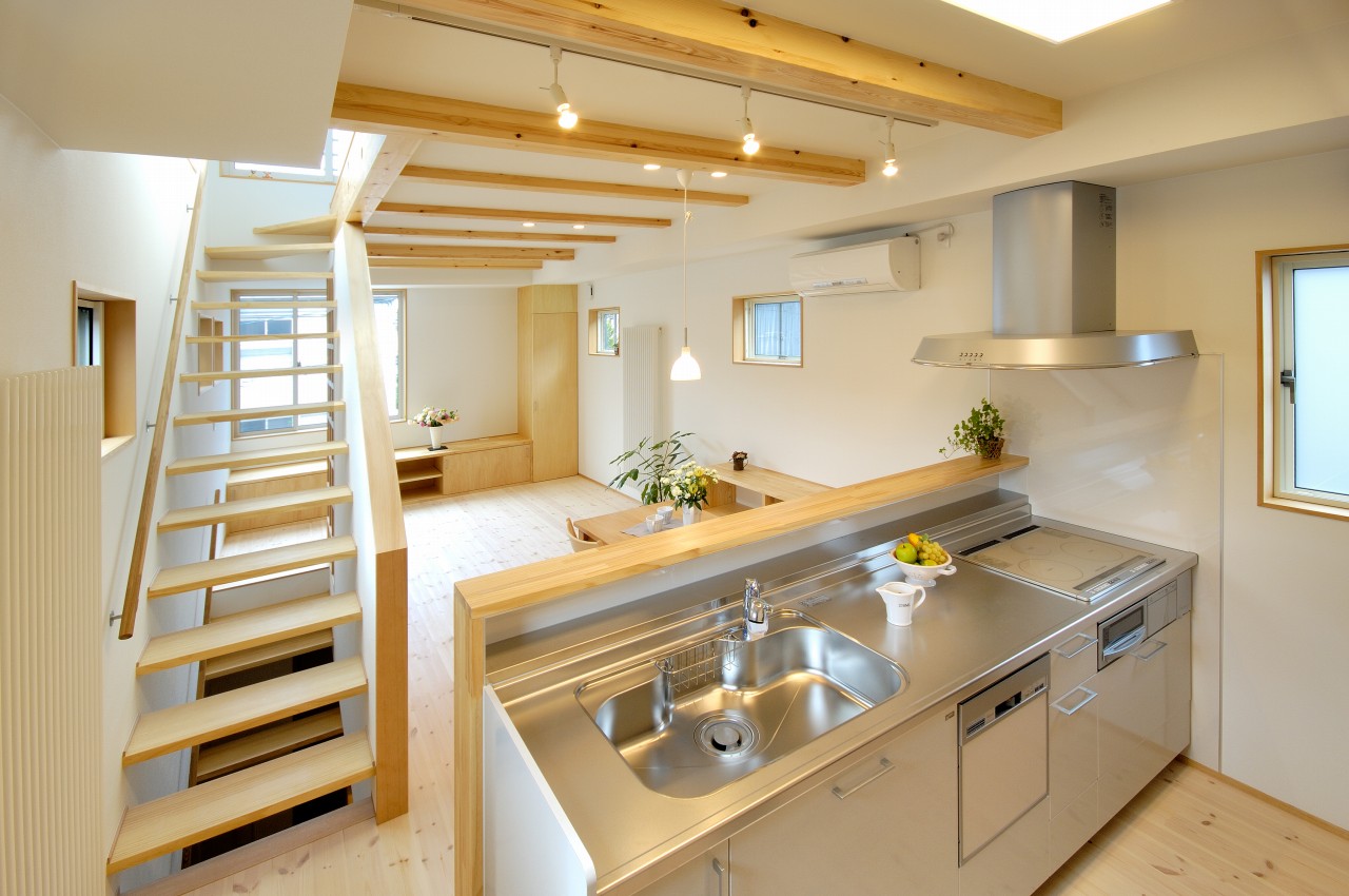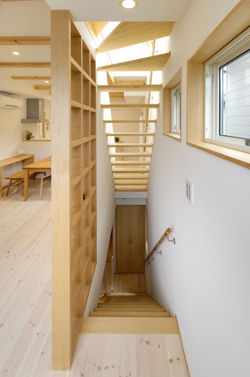 1Fと3Fとをつなぐ階段は、光と風を運ぶトランスポーターとなった。