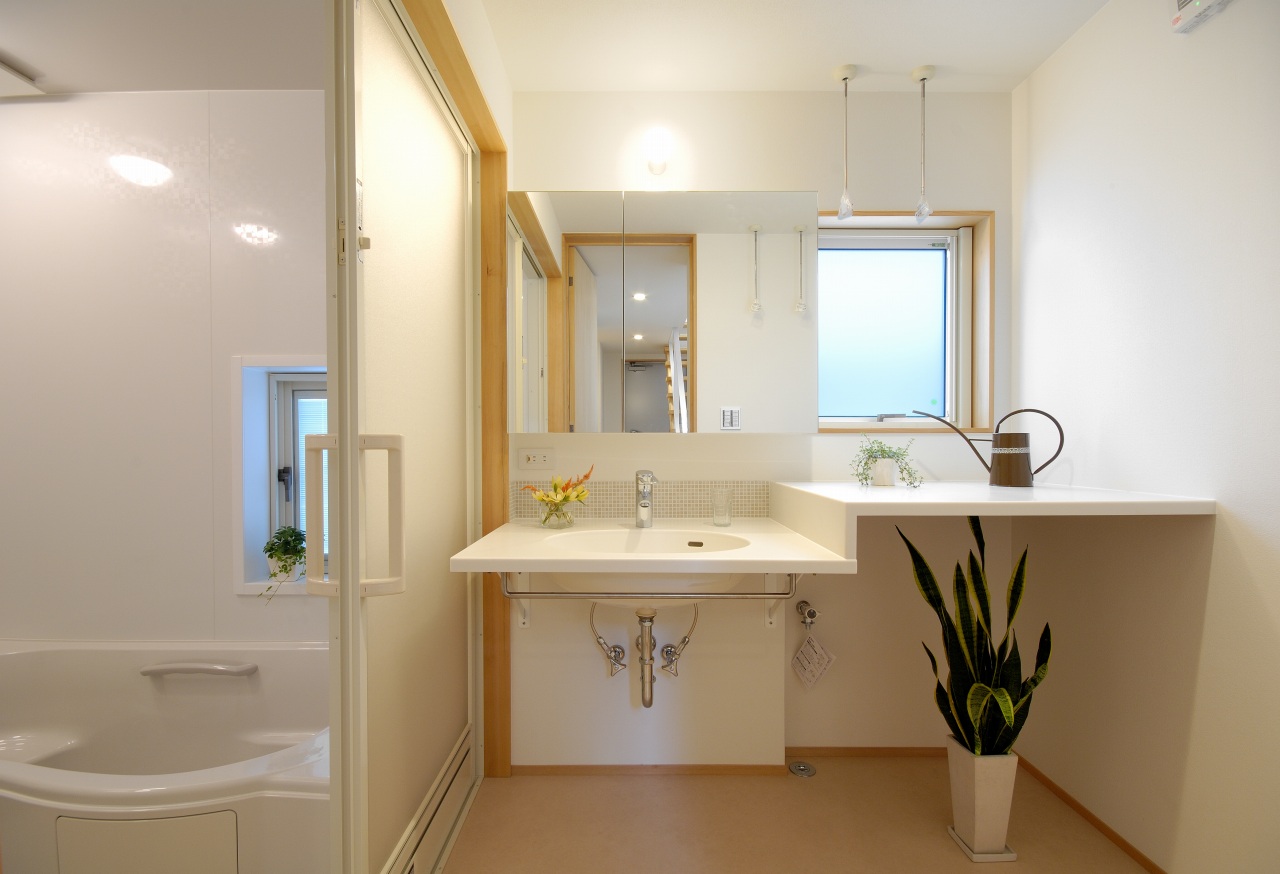 お湯に浸かって今日の疲れを癒す。大きな収納に片付けをする。