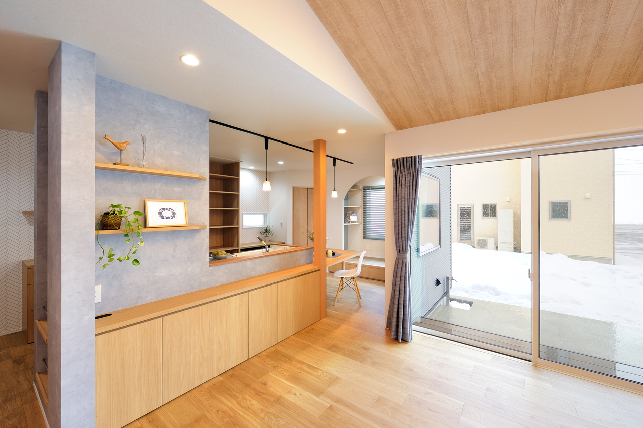 開放感を感じるリビング 勾配天井で感じる気持ちよさ 大きな窓は外との繋がりをつくる