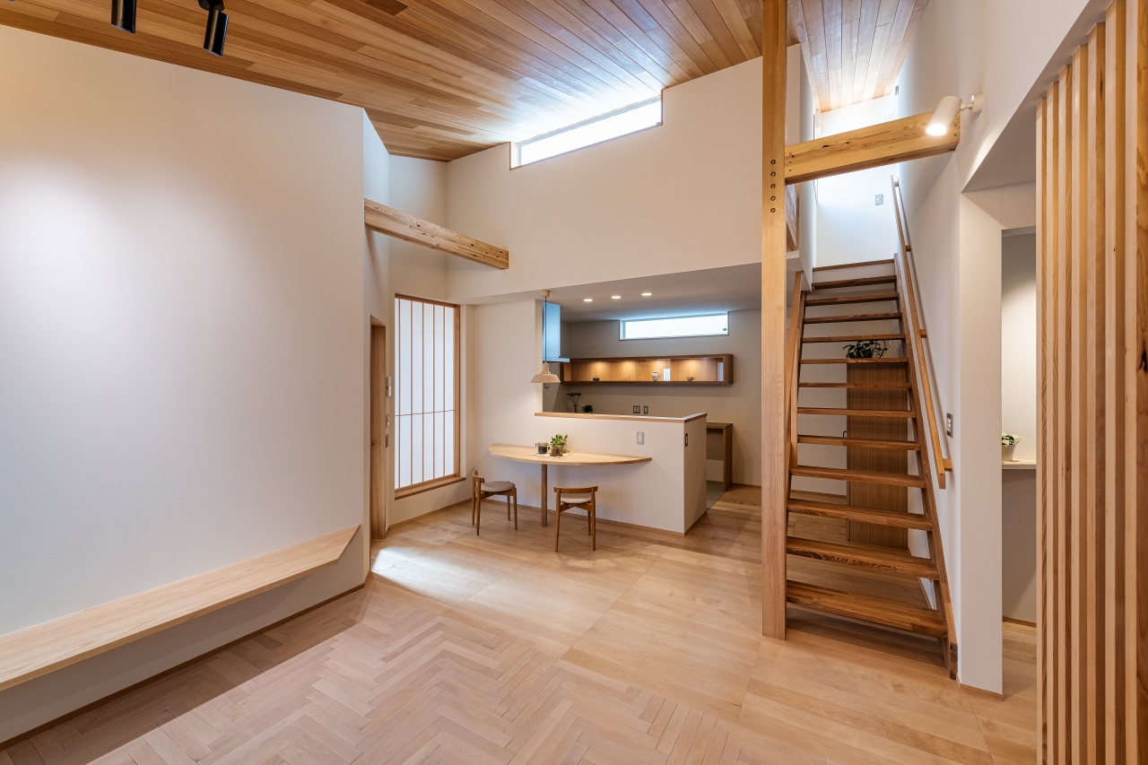 ヘリンボーンとすだれ張りを組み合わせたLDK