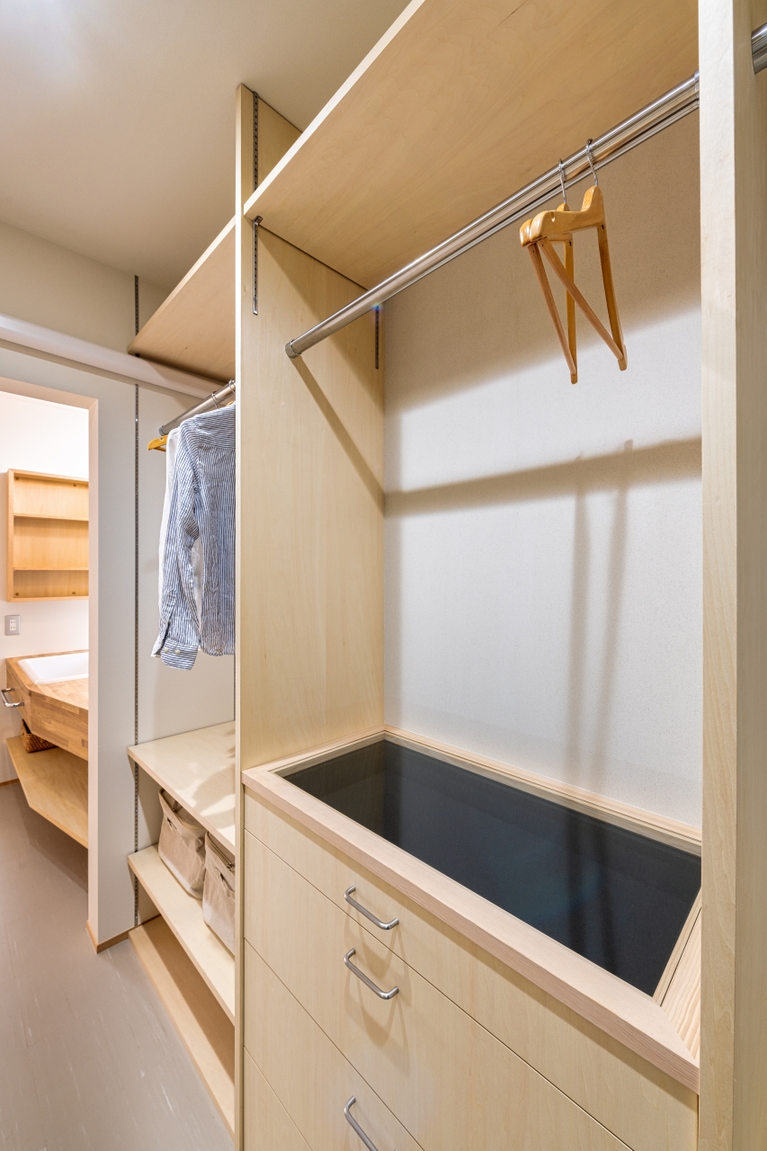 中地にフェルトを張ったアクセサリー収納のある、造作WIC