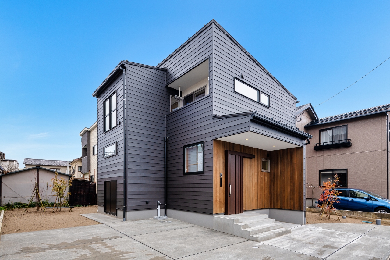 造作のTVボードと食器棚は素材を揃え、すっきりとした内装に
