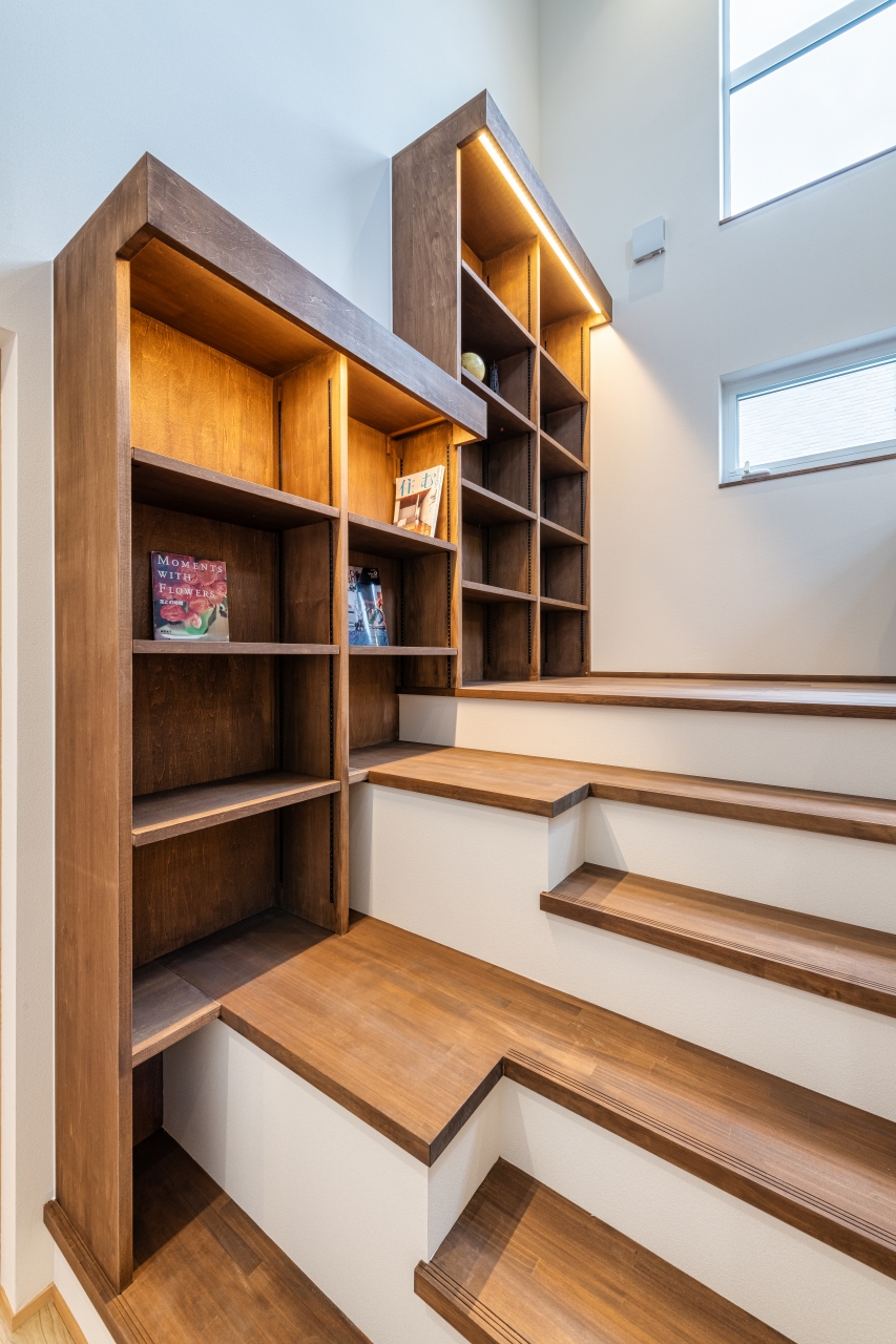 めちゃくちゃ広い階段の途中に本箱を積み重ねて、