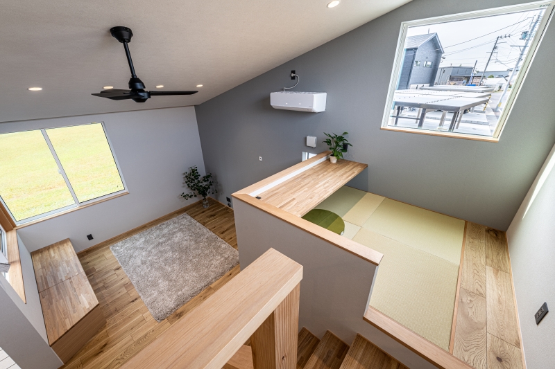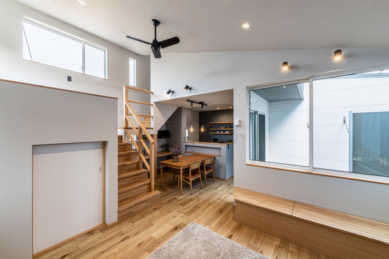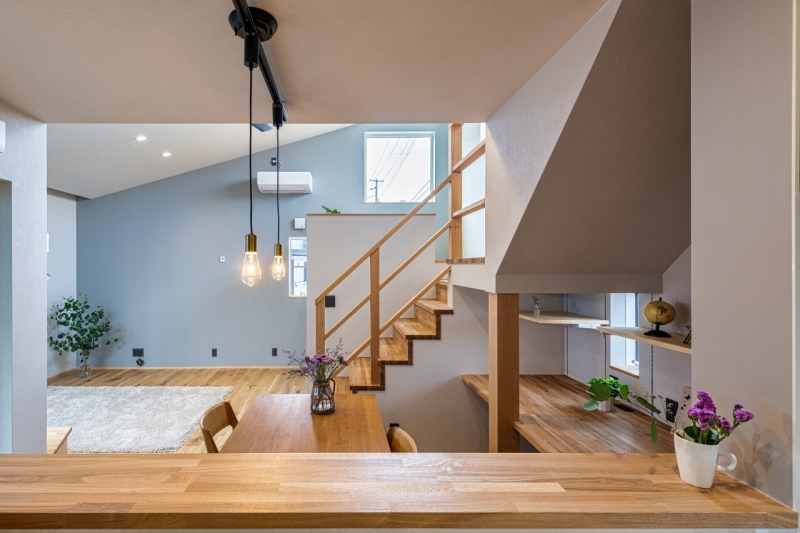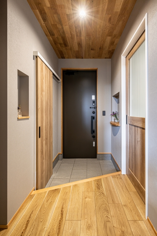 天井をオーク材で仕上げ落ち着いた雰囲気に