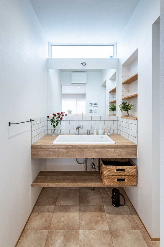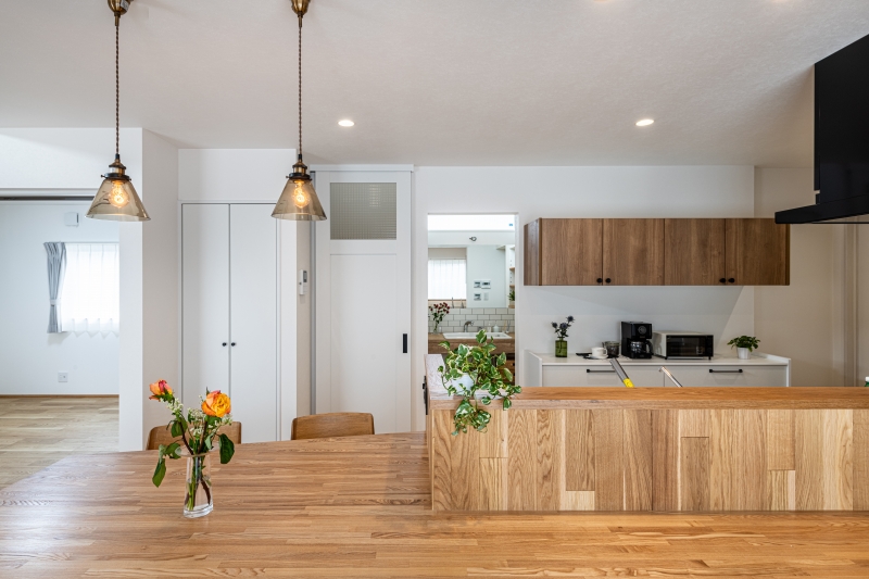 スタディーカウンターも兼ねたゆったりサイズの造作テーブル