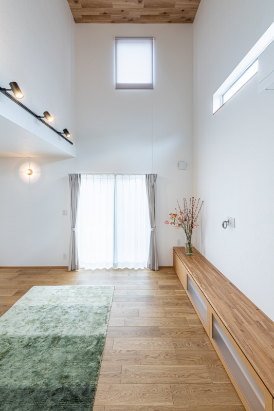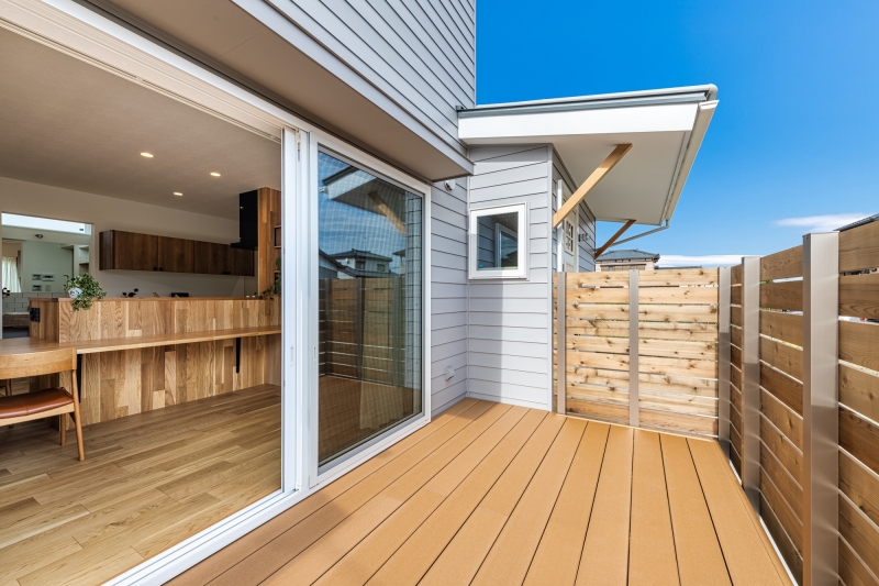 南側の大きな窓から光を取り入れウッドデッキへと繋がるLDK
