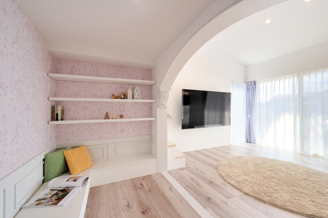 迷路のような廊下を歩き、中を散策した やわらかなヌックに腰を掛け、長旅の疲れを癒す