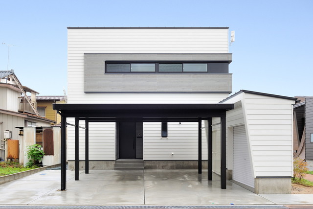 敷地の形に寄り添うように建物を配置する 奥行きを最大限利用することで、中庭が生まれ、光が現れる 玄関~キッチン~リビングと移動する事で変化していく景色 奥行きのあるシークエンスにより日常が輝き出す 包まれた中庭に今日も光が降り注ぐ