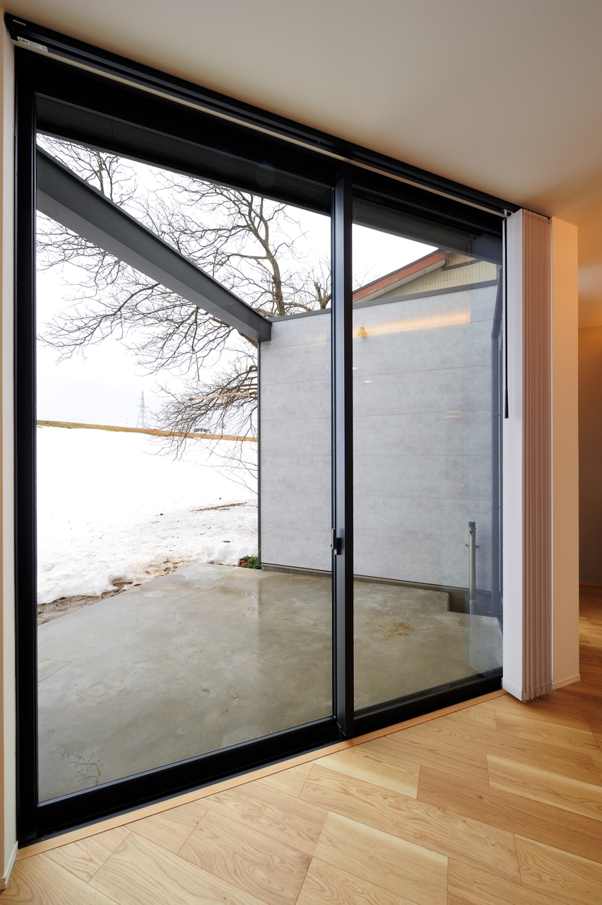 プライバシーを確保した 大きな土間テラス