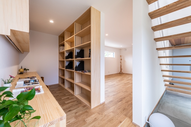 こども室と造作本棚のあるスタディーコーナー