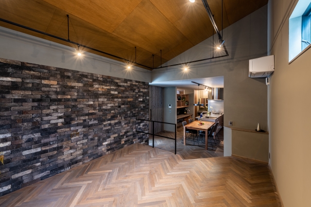 あえて光を抑えた落ち着いた空間に、古煉瓦やヘリンボーン貼りの床がよく似合う