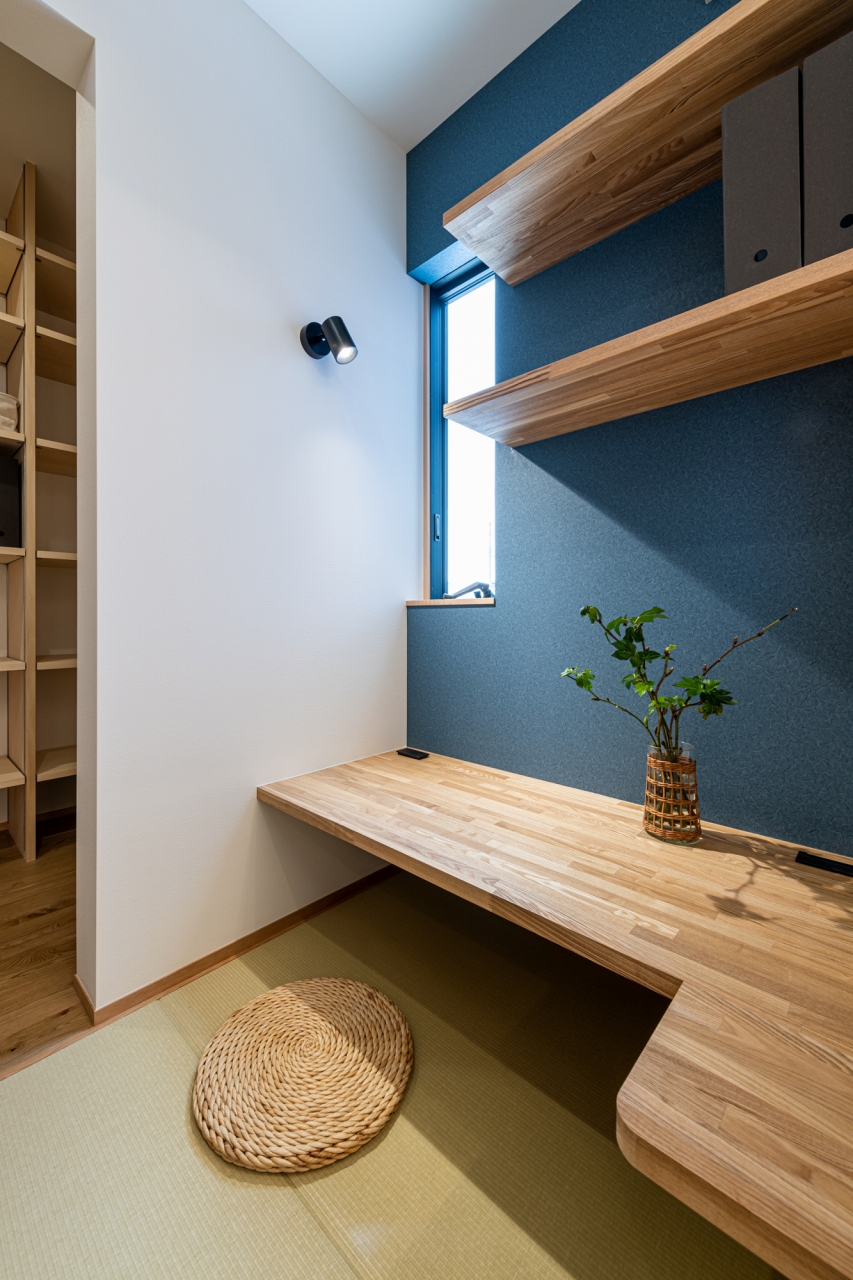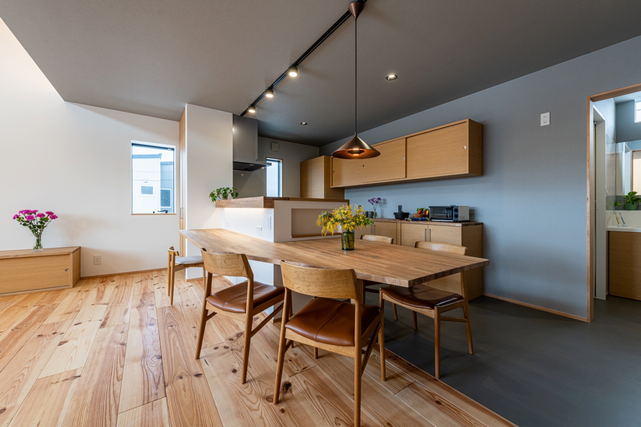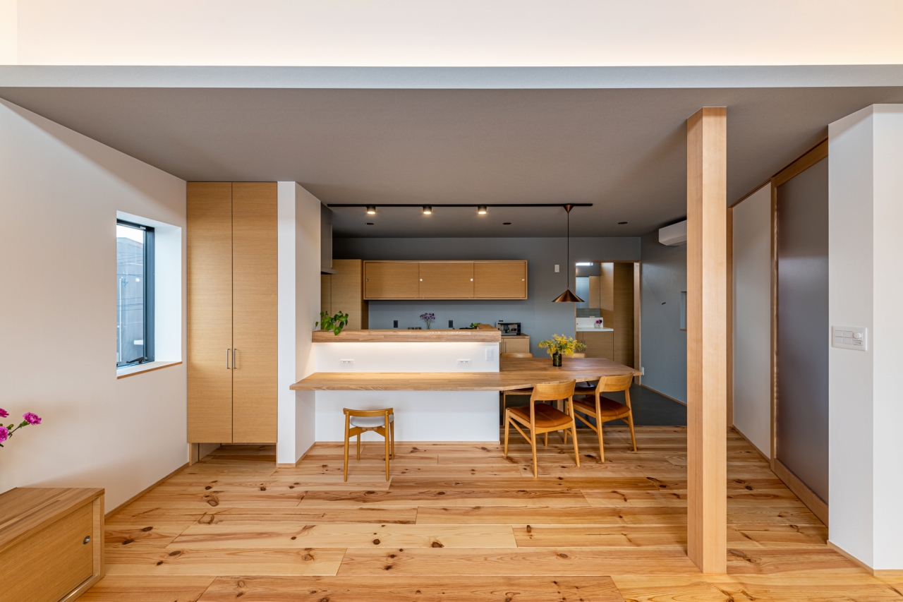ダイニングとスタディコーナーを兼ねた造作カウンター