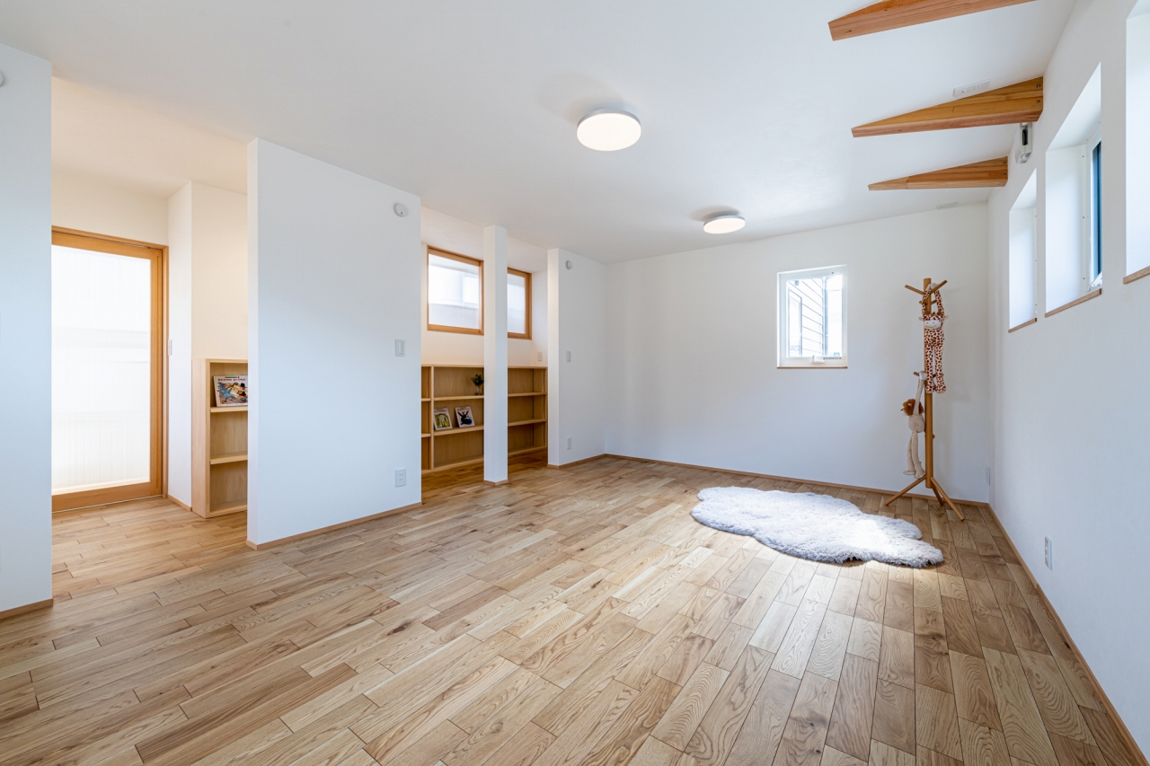 間仕切り壁無しの大きな子ども室は思い切り遊べる空間。