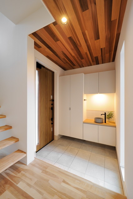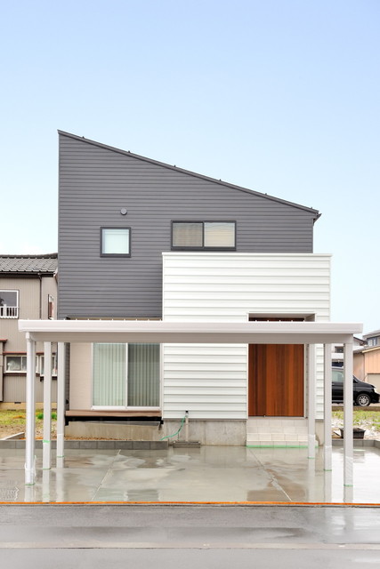 柔らかい木の雰囲気に ブラック・グレーのカラーでアクセント 悩みぬいた外壁は 幅のあるホワイトがお気に入り