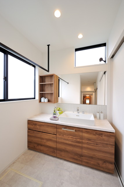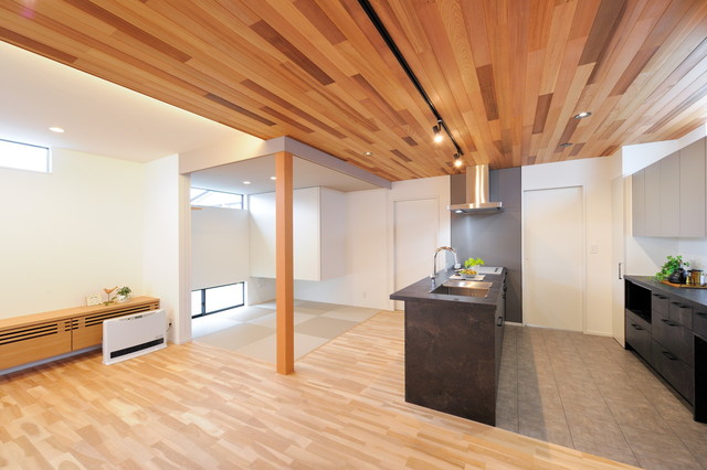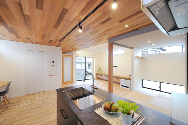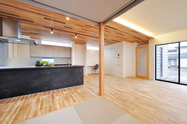 モダンキッチンと無垢床の住まい