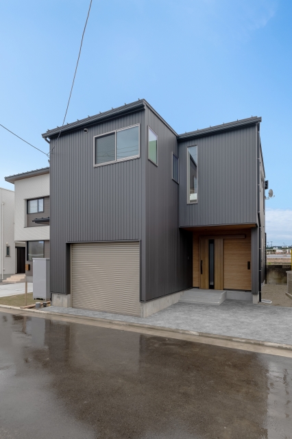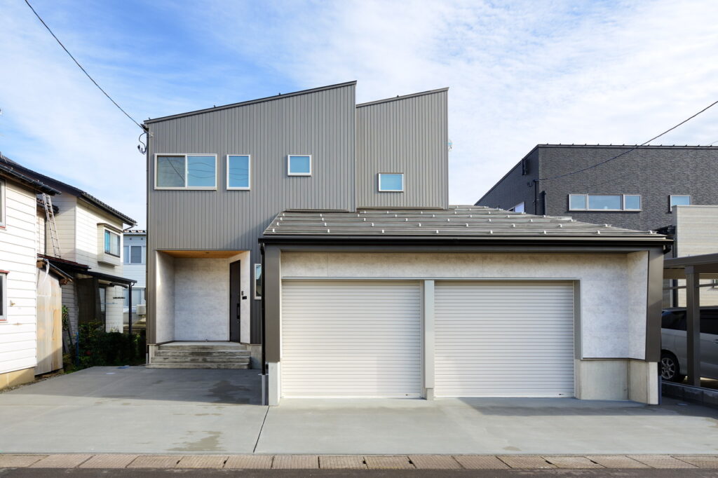 大きなガレージと2階リビングの家