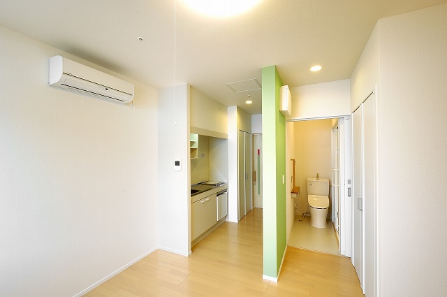 設備・仕様 IHコンロ1台・冷暖エアコン1台・ミニ冷蔵庫・共用のコインランドリーあり