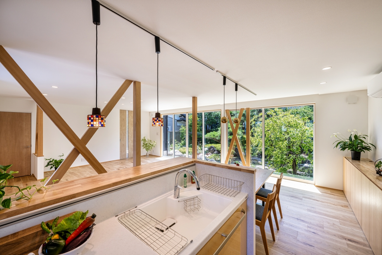 大小さまざまな屋根が並ぶ中に緑豊かな庭園を見つけた。